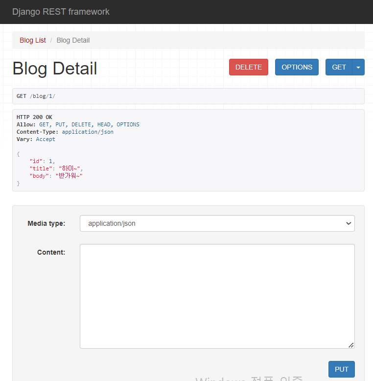 APIview의 기본적인 골격은 아래와 같다. class Class_name(APIView): def method_name(self, request, format=None): # 해당 HTTP method를 어떻게 동작시킬지 정의 method_name으로는 HTTP method인 get, post, delete 등이 존재한다. APIView를 상속 받아서 원하는 기능을 구현하기 위한 HTTP method를 구현하면 된다. ✅ models.py from django.db import models from django.conf import settings # Create your models here. class Blog(models.Model): title = models.CharField(max_leng..
